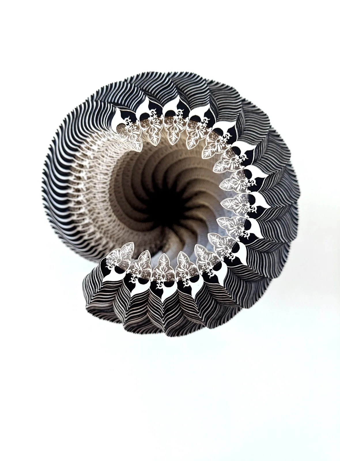 Laser-Cut Paper Coils Into Intricate Vessels That Contrast Human Touch and Technology